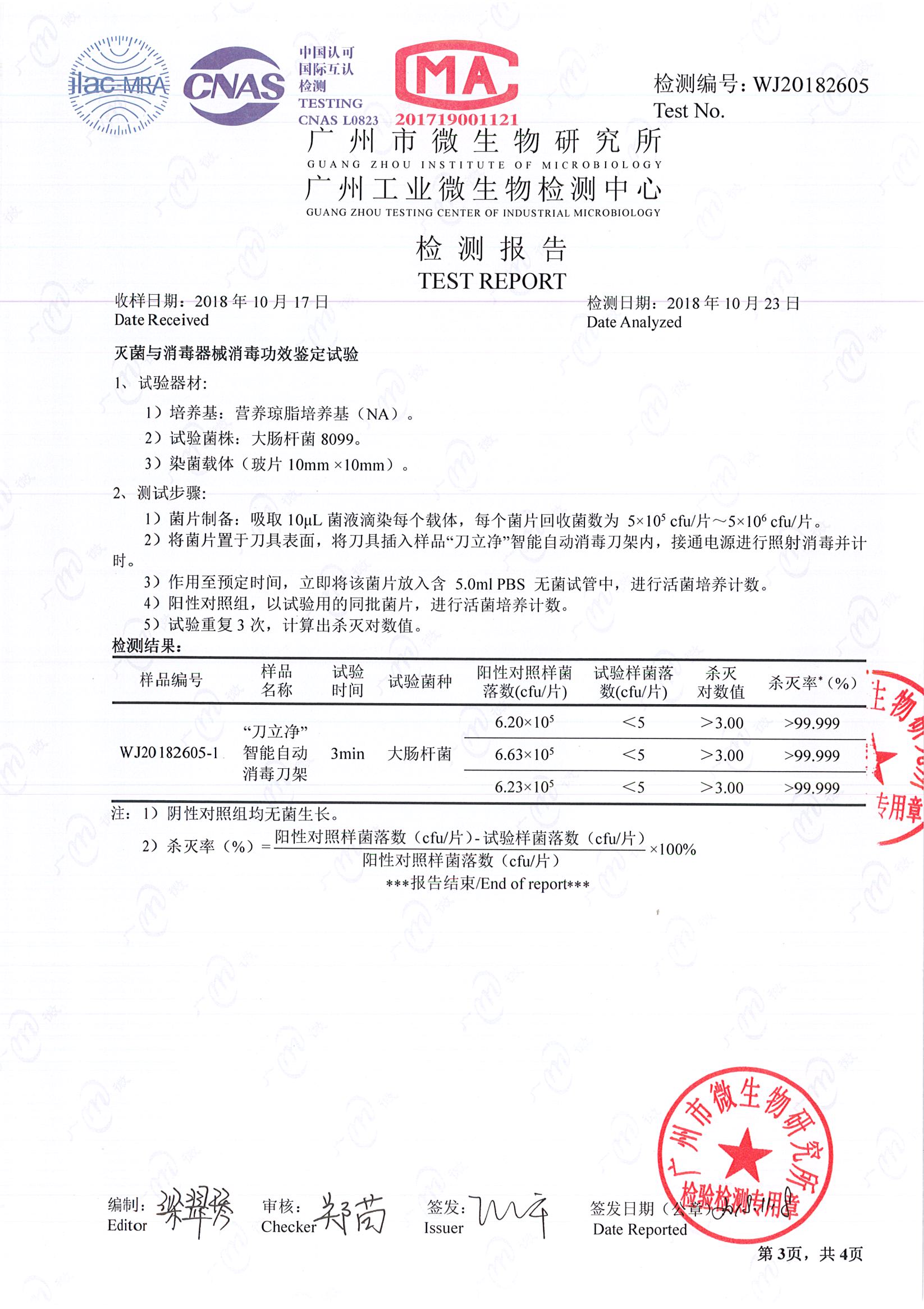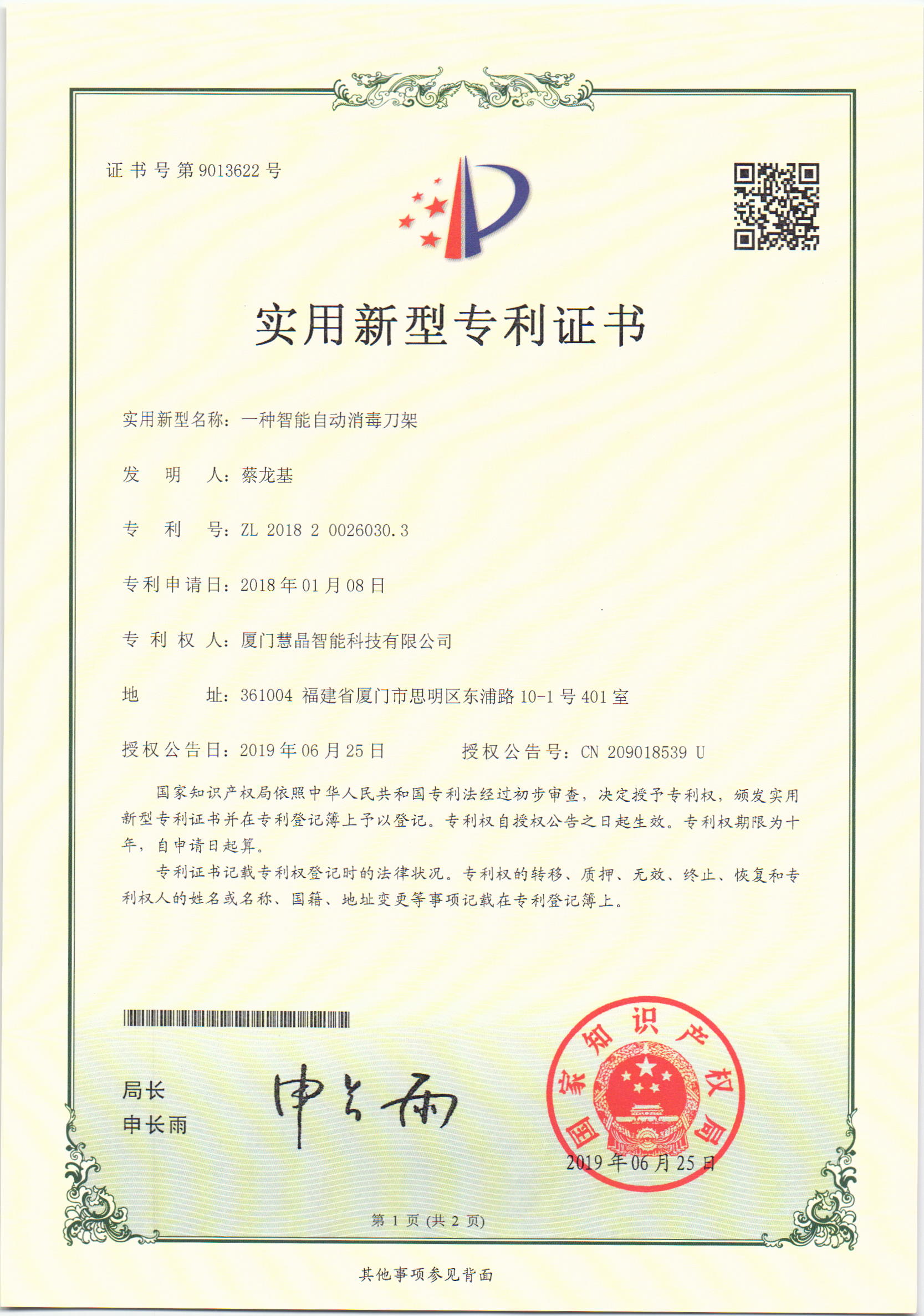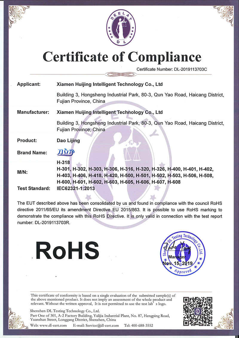 旗下主打产品“刀立净”智能全自动消毒刀架,拥有发明及实用新型多项专利,填补了厨房电器的一个空白。