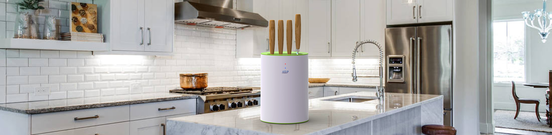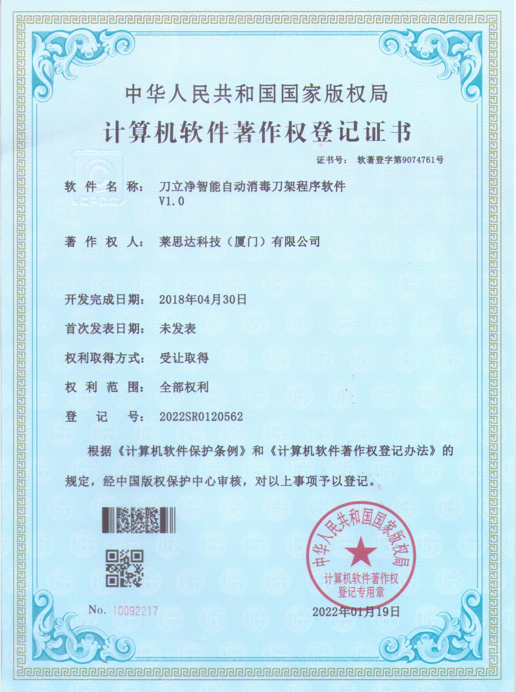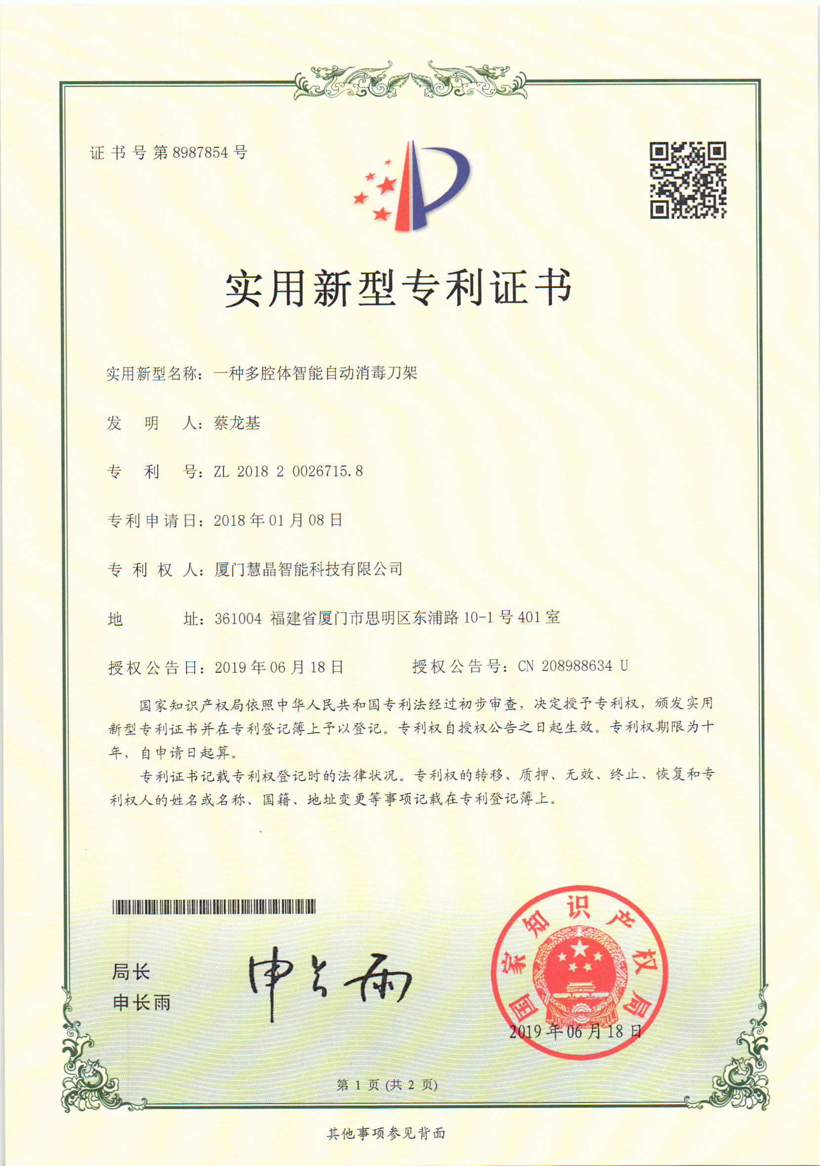 旗下主打产品“刀立净”智能全自动消毒刀架,拥有发明及实用新型多项专利,填补了厨房电器的一个空白。
