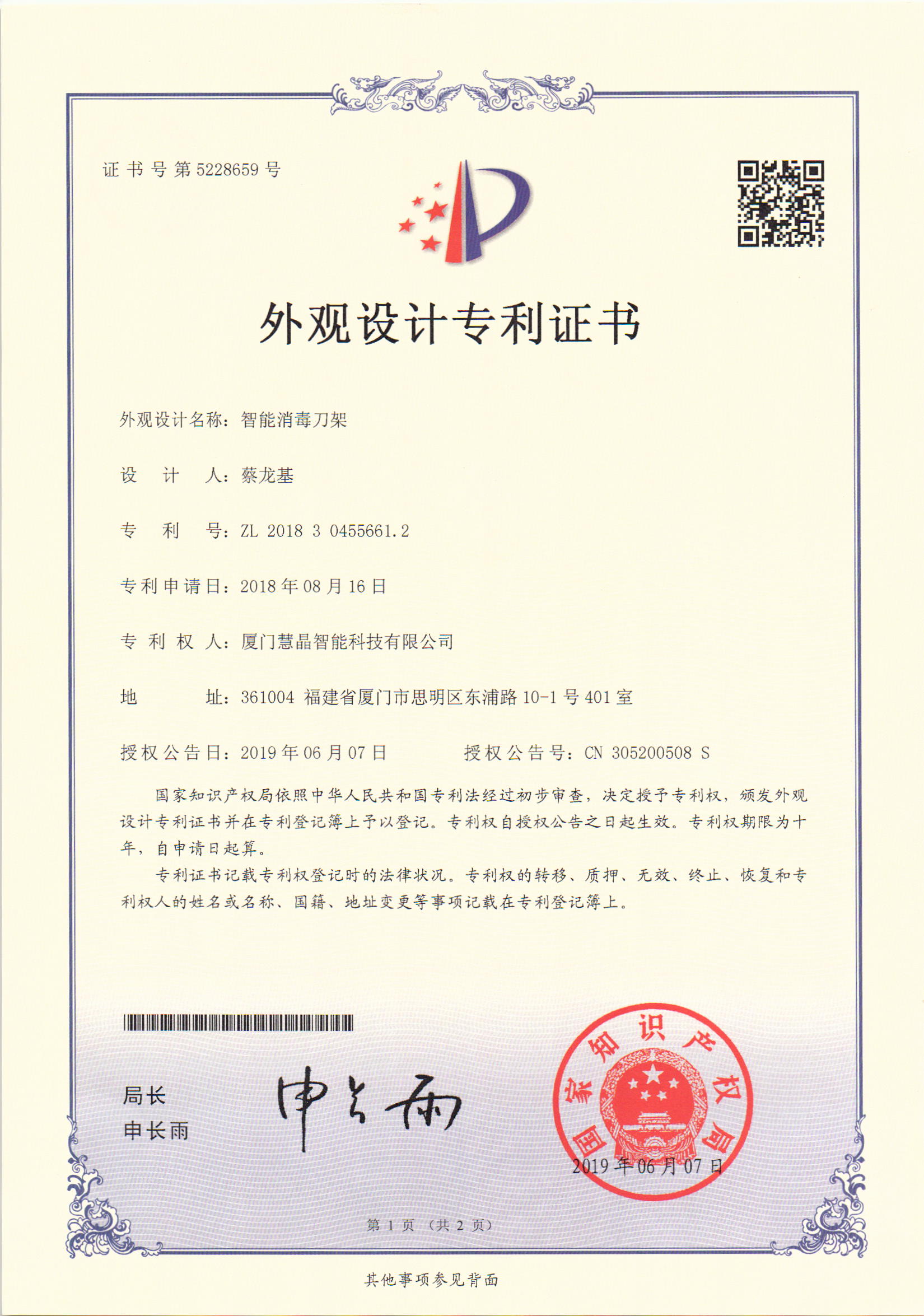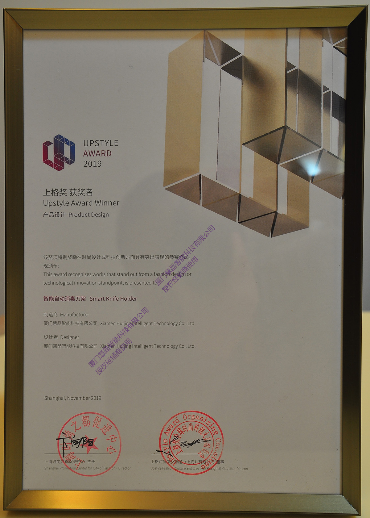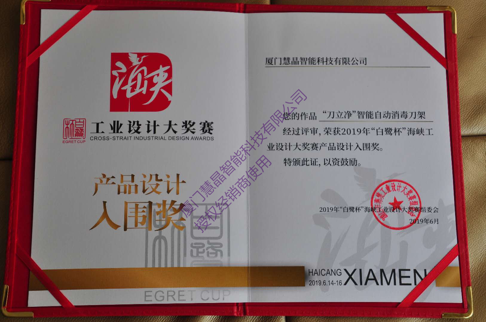 2019年4月,“白鹭杯”海峡工业设计大奖赛,共有22个国家和地区7482个作品参赛,经过30位专家初评,有646件作品入围,刀立净智能自动消毒刀架名列其中。